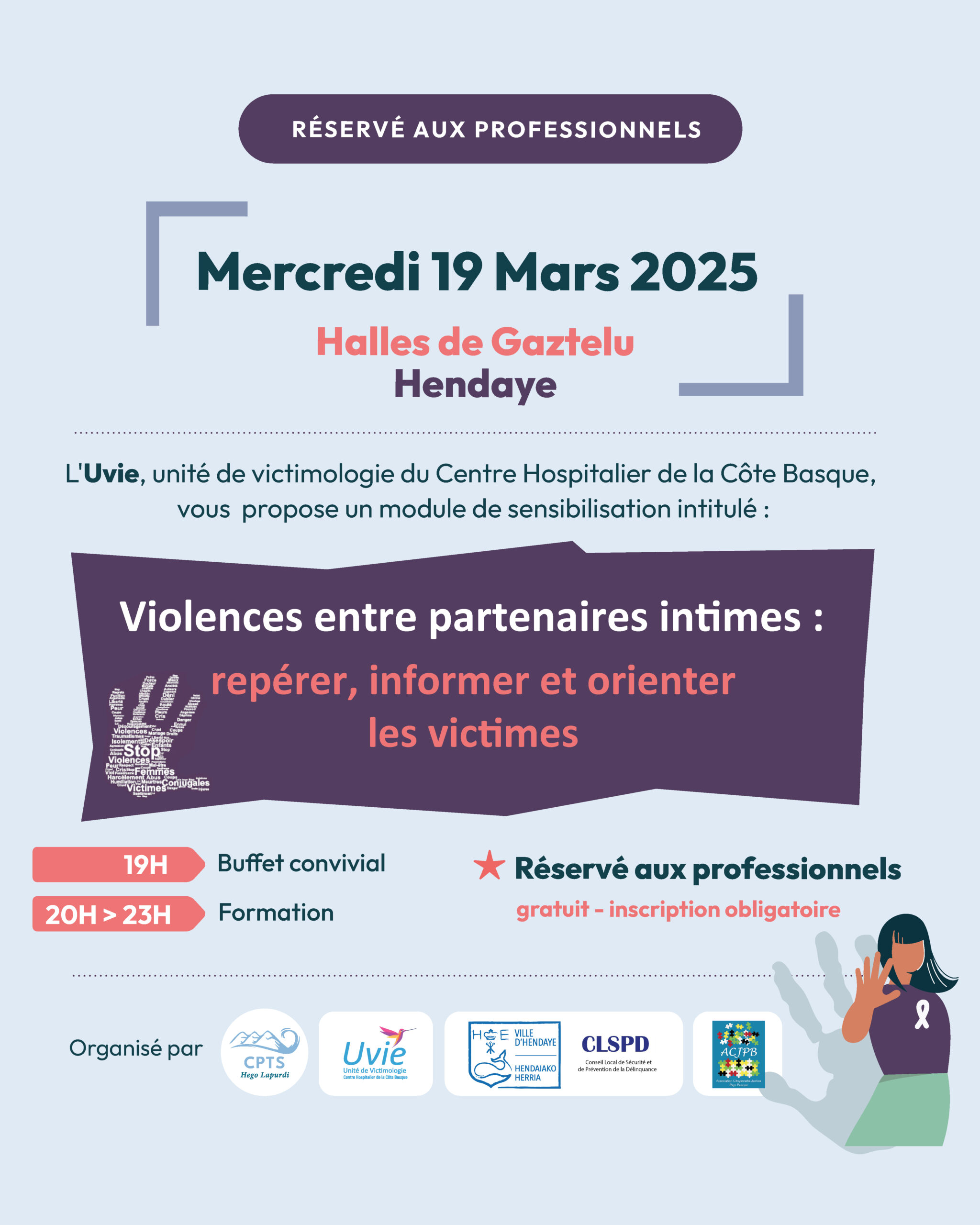 Le mercredi 19 mars, la CPTS Hego Lapurdi a organisé, aux Halles de Gaztelu à Hendaye, une soirée d’échanges et de sensibilisation consacrée aux violences entre partenaires intimes, à destination des professionnels de santé du territoire.