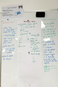 Après un rappel des actions déjà mises en place par la CPTS Hego Lapurdi (fiche de liaison entrée hôpital, procédure de sortie, Entr’Actes pour la prise en charge, protocoles gériatrie, AVK, Livret Senior…), les participants ont travaillé en groupes pluridisciplinaires autour de deux cas concrets :